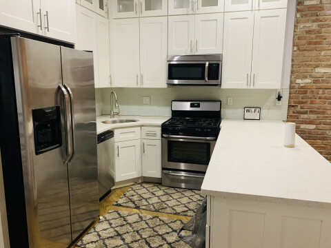 CENTRAL AC/HEAT. WASHER/ DRYER IN UNIT. NEW STAINLESS STEEL APPLIANCES INCLUDING DISHWASHER. OPEN CONCEPT KITCHEN WITH EXPOSED BRICK WALLS. BEAUTIFUL HUGE BATHROOM WITH STANDUP SHOWER AND BATHTUB. ONLY 2 BLOCKS FROM A/C TRAIN STATION.
